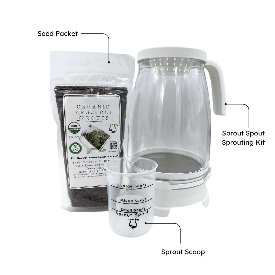 Sprout Spout Broccoli Starter Kit: Sprout Spout + 4oz or 1lb seeds + Free Sprout Scoop