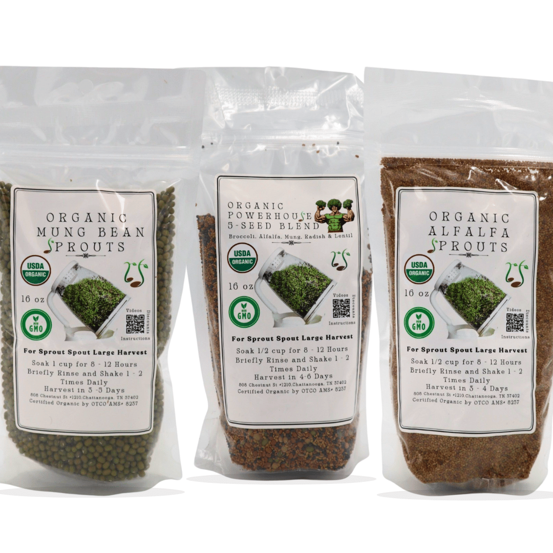 Sprout Spout Wellness Warrior Starter Kit: Sprout Spout + 4oz or 1lb seeds + Free Sprout Scoop