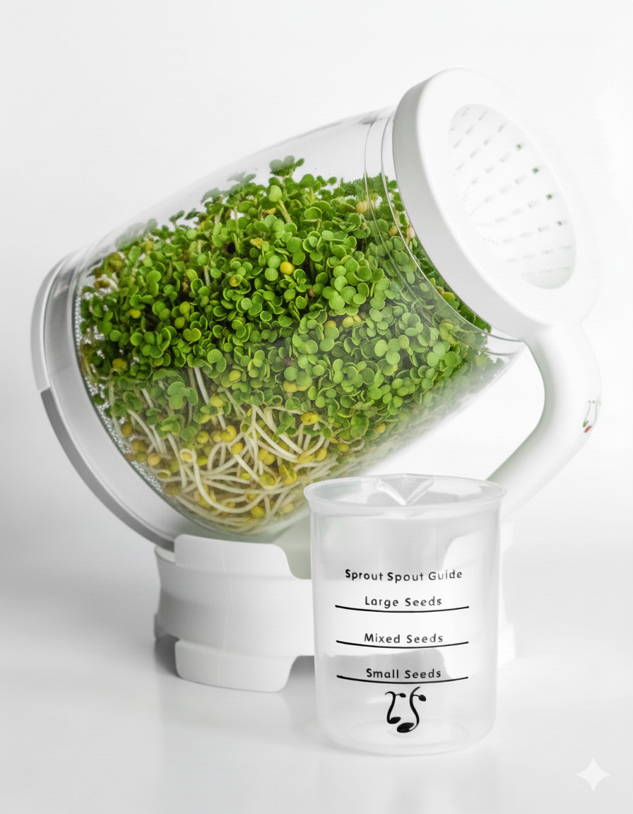 The Sprout Spout is an oasis of wellness that accommodates any space. Give yourself and your loved ones the gift of continuous vibrant health, effortlessly grown in your own kitchen today.
